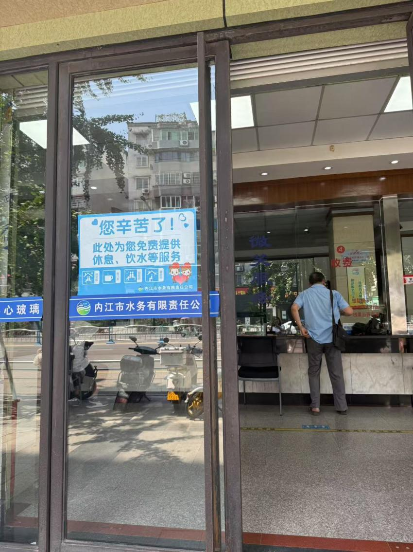 依托公司營(yíng)業(yè)收費大廳,公司第三黨支部主動(dòng)作為,在醒目位置張貼“熱可納涼、渴能飲水、累可歇腳”等標識標語(yǔ),為外賣(mài)小哥、快遞員、環(huán)衛工人等戶(hù)外工作者增設“水務(wù)清涼角”,免費提供納涼避暑區域,將營(yíng)業(yè)廳打造成清涼港灣,為他們送去一份“清涼”,傳遞一份“溫情”。